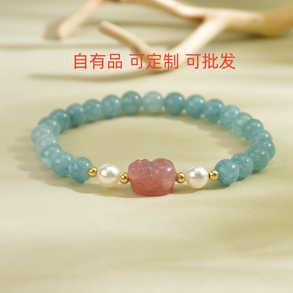 北京雍和九尾狐瑠璃手串桜花粉桃花運招財水晶ブレスレットは彼女に卸売りして代行します。