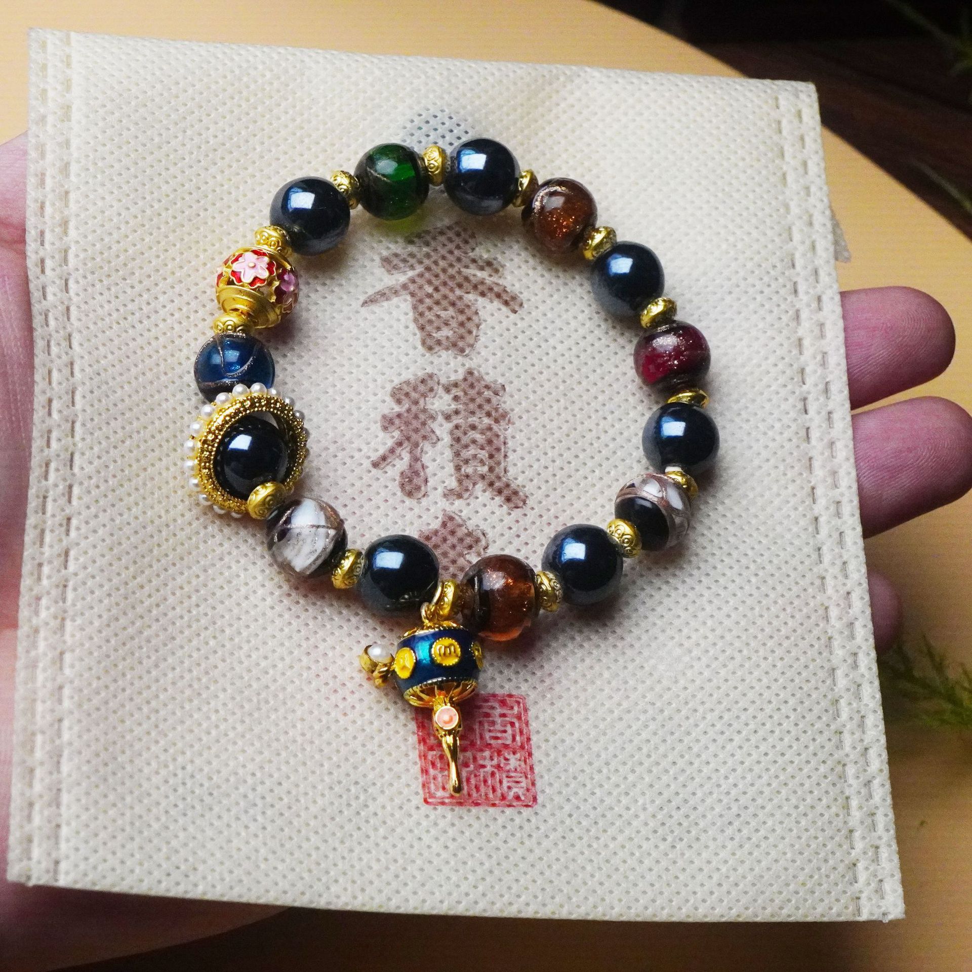 景泰藍香灰瑠璃手串五彩文創転経筒金箔瑠璃ブレスレット真珠転走環運転手