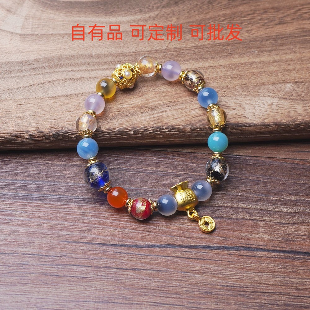北京雍和半糖香灰糖心瑠璃手串福気満福袋瑪瑙ブレスレット本命年手飾り女