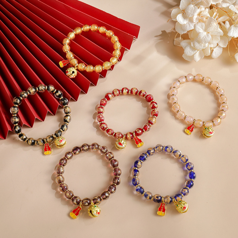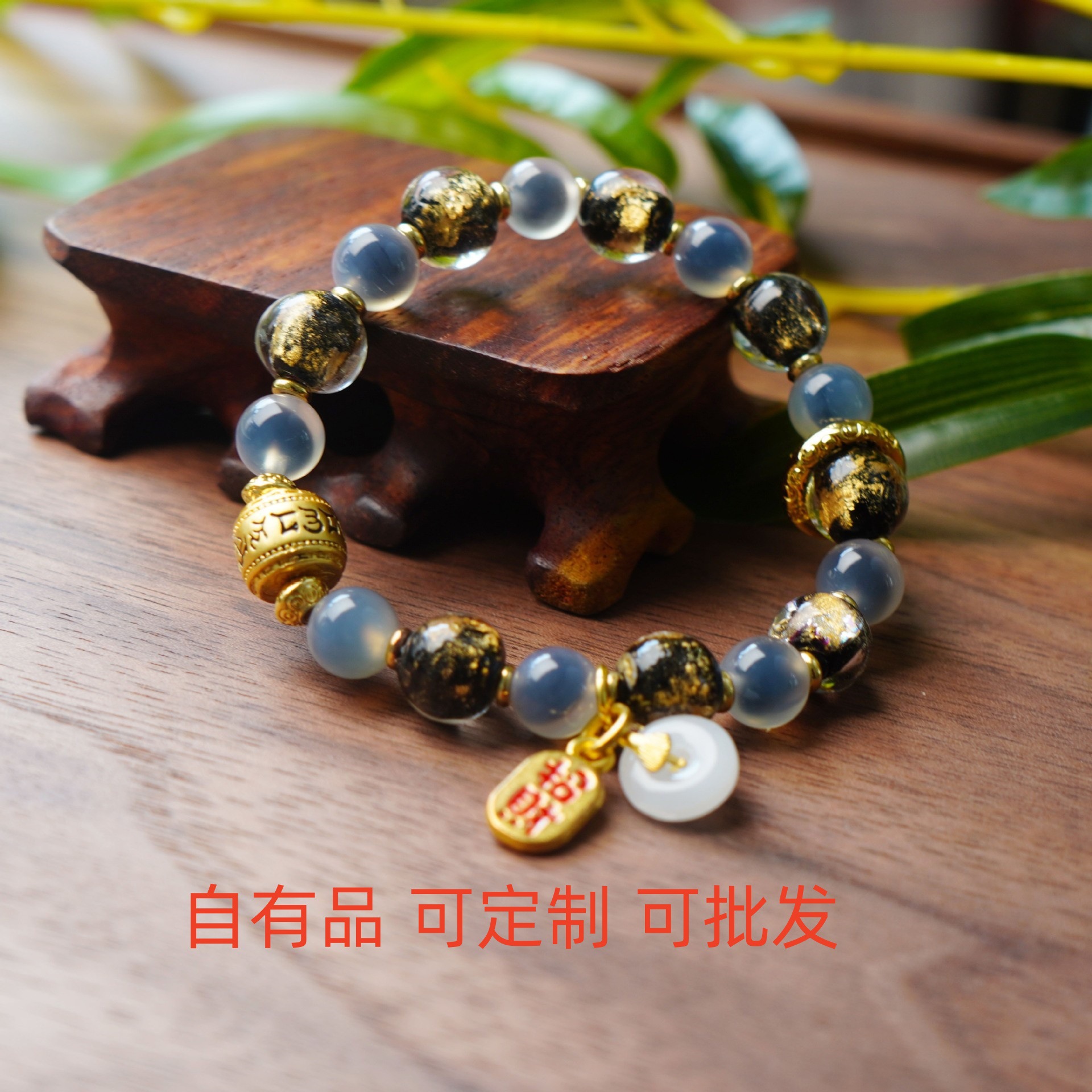 半糖黒金箔瑠璃ドーパミンブレスレット納福招財平安バックル転送ビーズ水晶手串カップル手飾り
