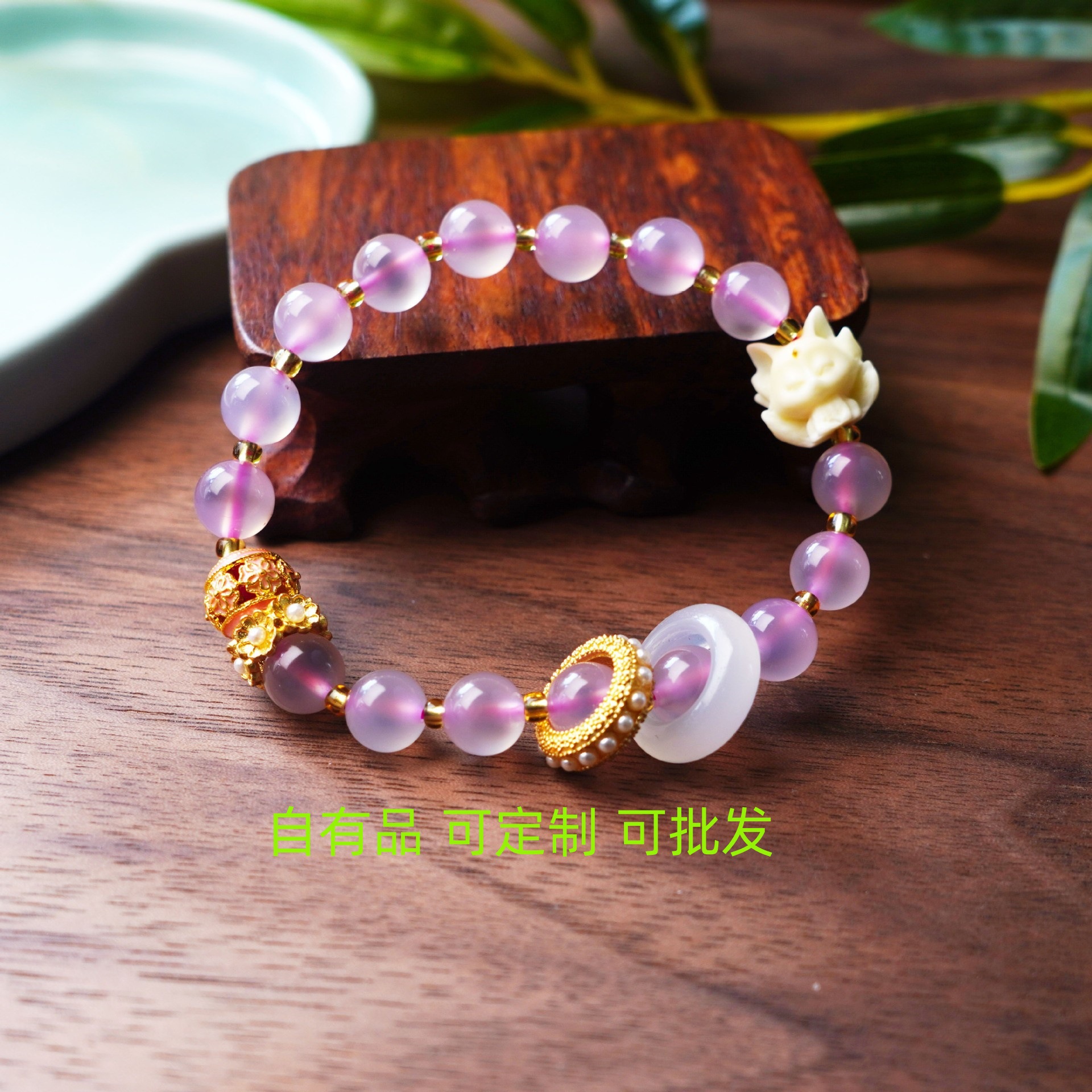 ネットで爆発した天然煙紫灰五路財神手串金木水火土五行バランスメノウブレスレットプレゼント