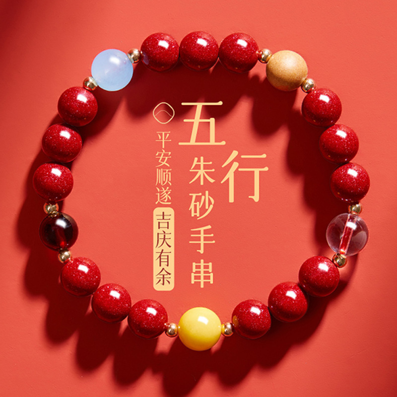 天然本命年朱砂手串五行五路多宝男女天然紫金砂ブレスレット振速メーカー出荷