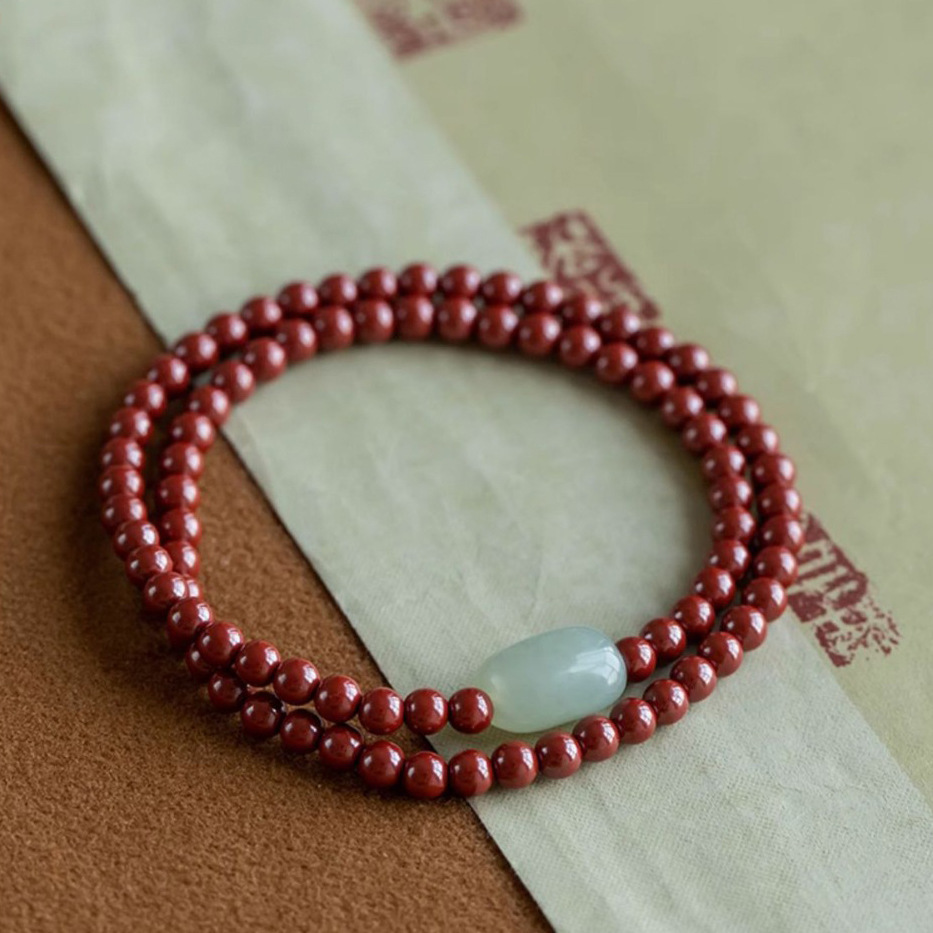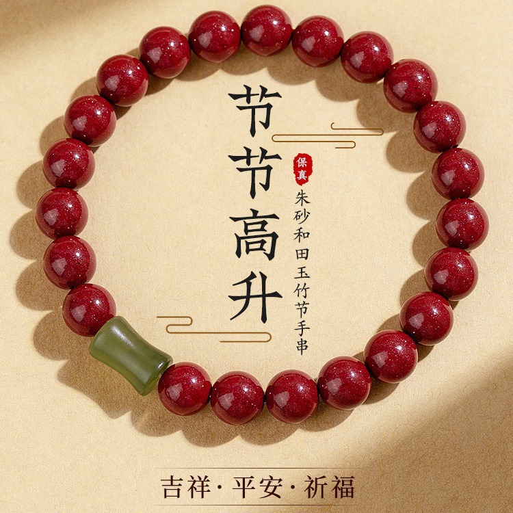 高級感国風新中国式天然朱砂手串崑崙白玉寿山石手串ブレスレット男女共通