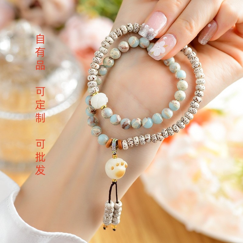 卸売り天然寿山石星月菩提双輪手串炭焼猫爪ペンダント新中国式清新新作ブレスレット