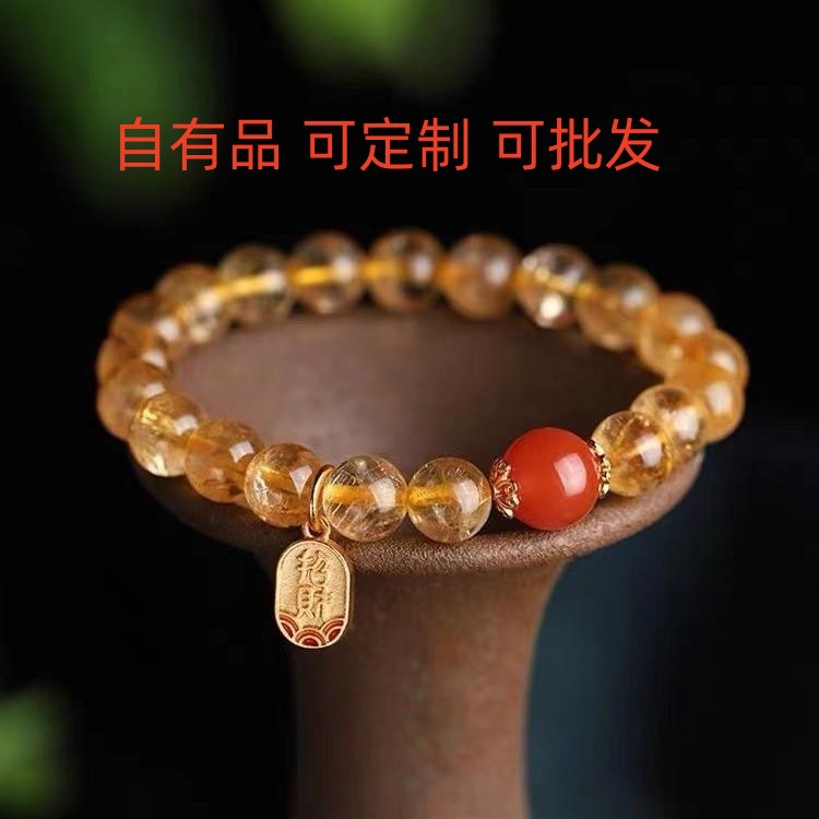 天然ブラジル黄水晶手串女デザイン金招財吊牌アクセサリー紅瑪瑙シンプルdiy女ブレスレット