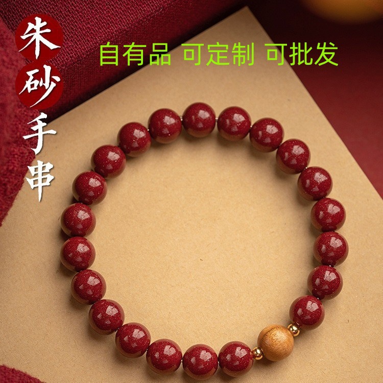 天然保真朱砂手串女性金天然高含有量紫金砂帝王砂玉ブレスレット代発可