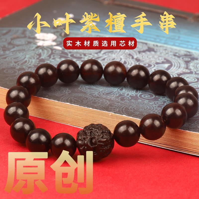 小叶紫檀手串オリジナルデザイン和田玉饰り大漆珠紫檀文游び仏珠ブレスレット高品