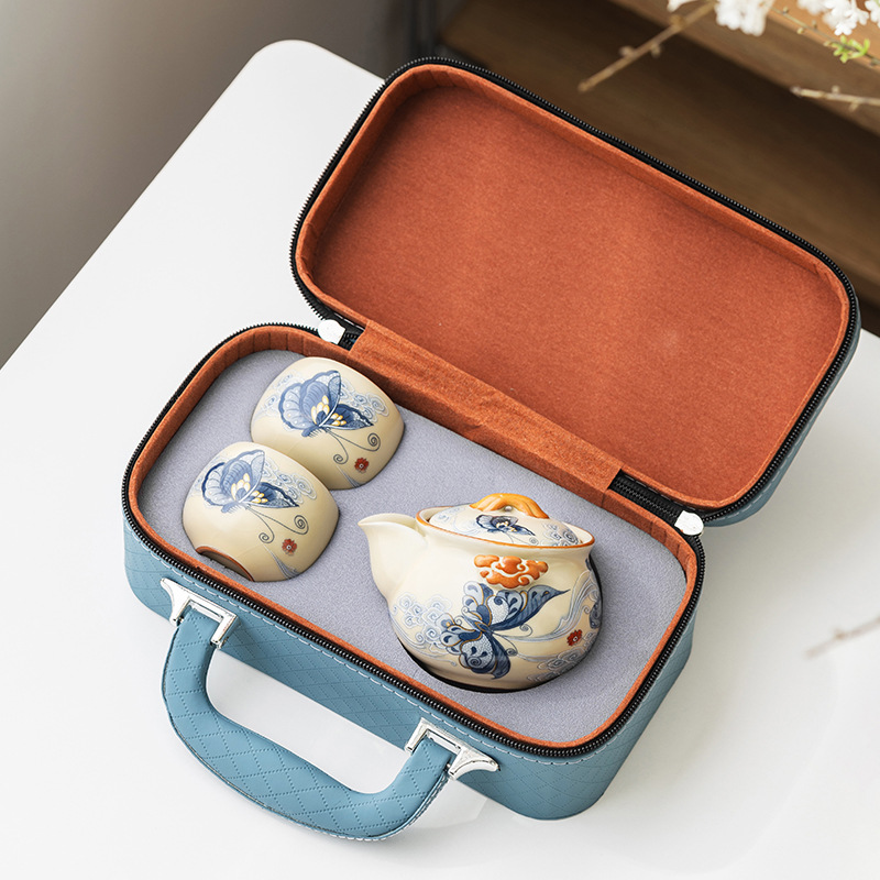汝窯 1 ポット 3 カップ アウトドア キャンプ ティー トラベル ティーセット 小型セット ポータブル ティーポット ティーカップ 1人用