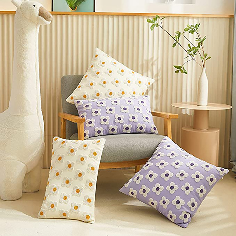 北欧ins風四弁花卵花クラスター刺繍オフィスベッドリビングソファ枕カバー