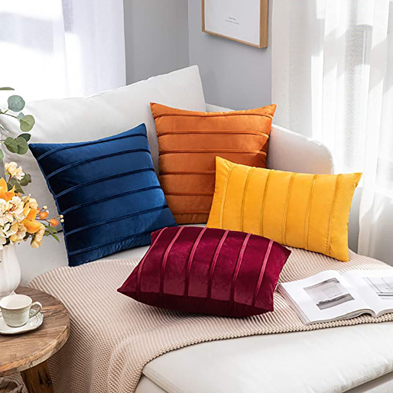 北欧の家庭用紡績家の装飾の純色のビロードのストライプの枕の事務室の腰のクッションのベッドの頭のソファーの抱き枕カバー