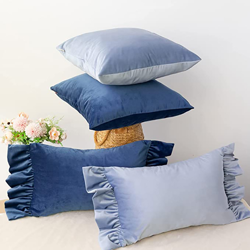 卸売り北欧insシンプル純色系ビロード蓮の葉レースしわ腰抱き枕客間ソファー枕