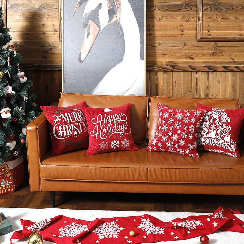 クロスボーダー卸売シェニールジャカードクリスマス雪のクッションカバークリスマス装飾ソファ抱き枕カバー