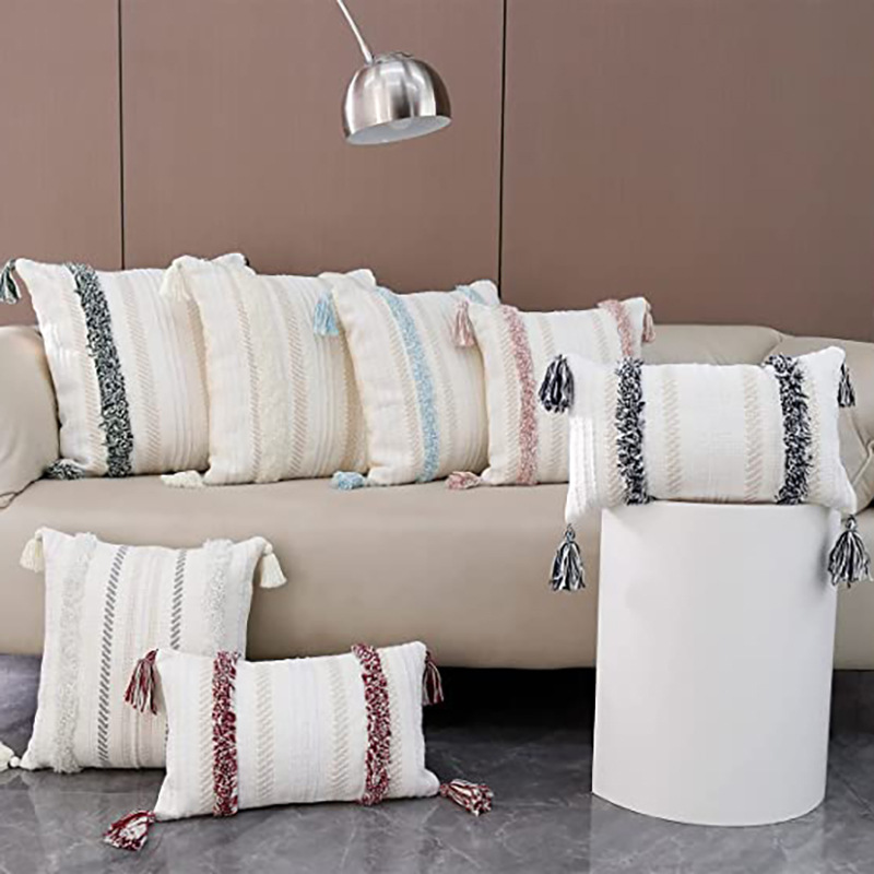 Insモロッコボヘミアンタフテッドカラー織ジャカード編みハサミフリンジクッションベッドソファ抱き枕カバー