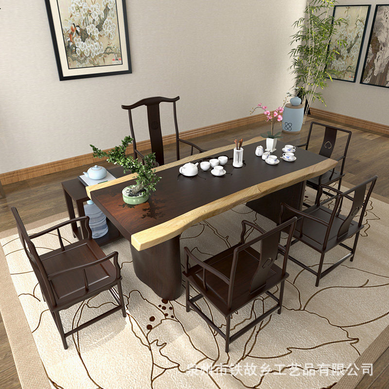 新中国式禅意工夫茶卓実木家庭用茶テーブルと椅子の組み合わせオフィス長方形茶台の大きなテーブル