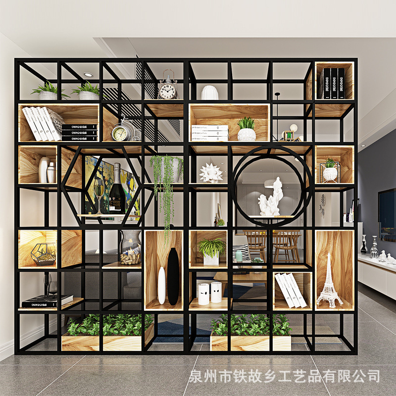 アメリカ式loft鉄芸客間オフィス仕切り棚レストラン装飾玄関棚床置き屏風本棚
