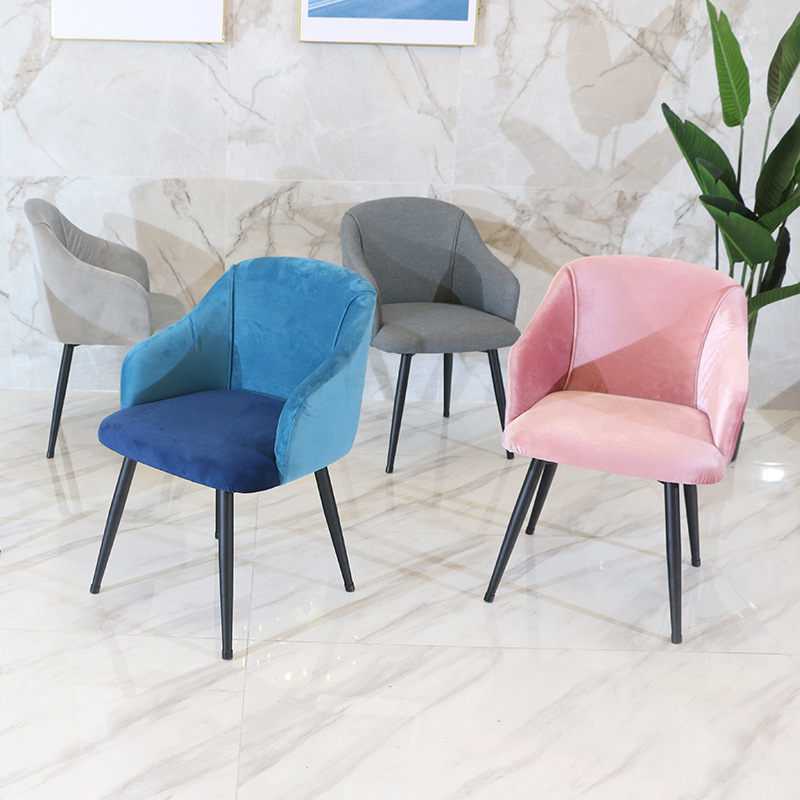 北欧シンプル鉄芸食事椅子ミルクティー店美容店ネット赤絨毛椅子寝室レジャー金色化粧椅子