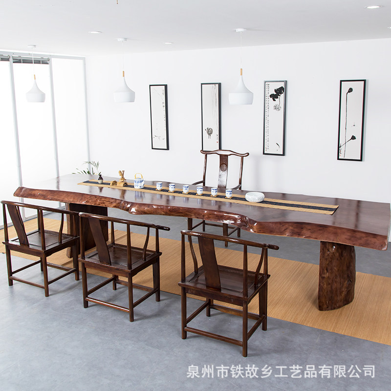 アンティーク禅意実木泡茶室茶卓紅檀色カンフー新中国式茶卓長条原木大板茶台