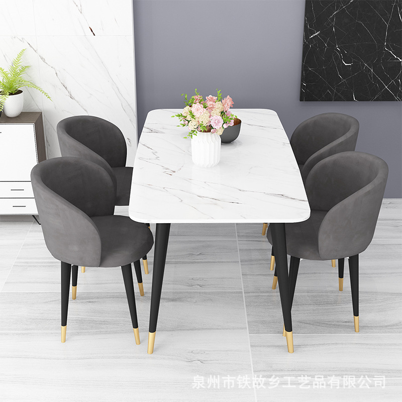 家庭用イタリア式食卓ホテルレストラン大理石食卓と椅子の組み合わせ長方形カフェ鉄芸食事テーブル