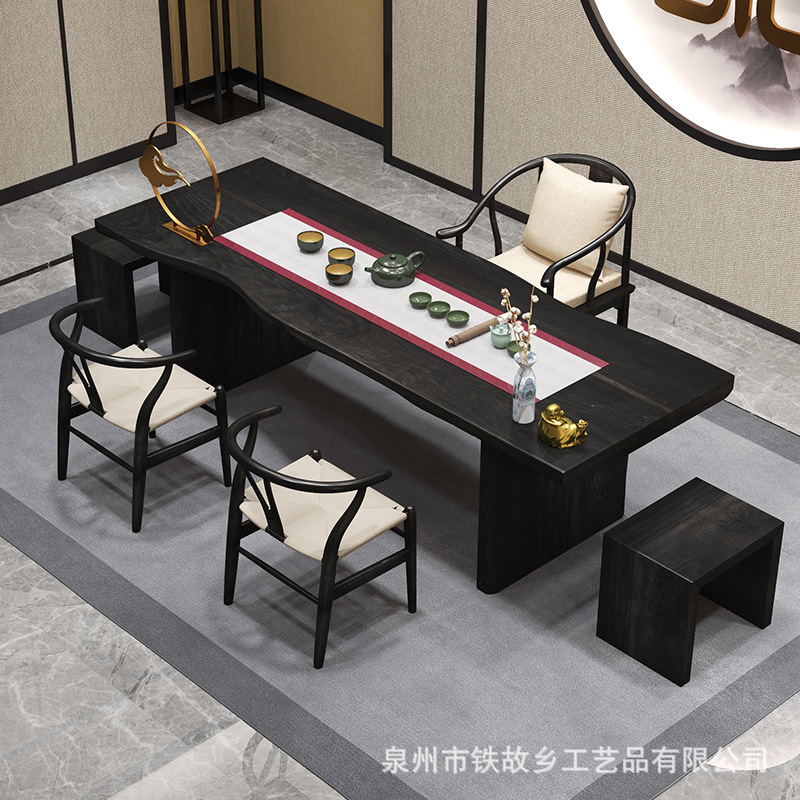 古典的な中国式の大きい板の実木の茶のテーブルの黒色の復古の不規則なカンフーティーテーブルの家庭用の茶のテーブルと椅子の組み合わせ