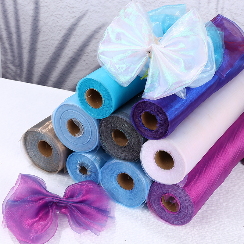 色とりどりのキラキラ光る欧根のガーゼの花の花束の包装のリボンの誕生日の宴会の糸の卸売り