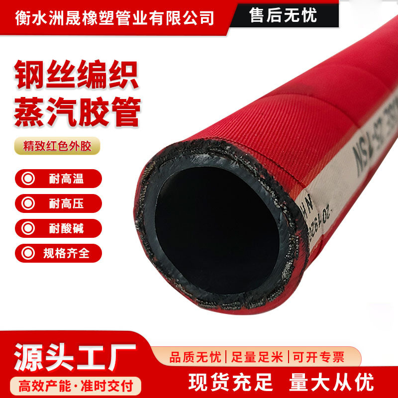 高圧鋼線編組蒸気ホース高温耐酸アルカリ赤色外ゴム蒸気ホース高圧ホース