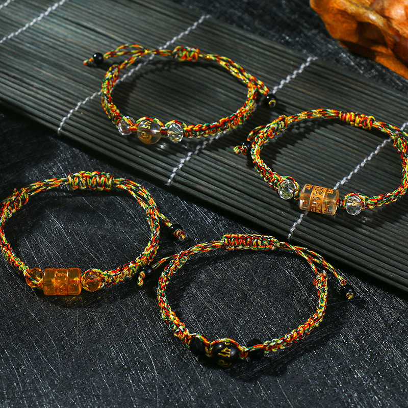 本命年の赤い縄のブレスレットは手で金糸の六字を編みます。