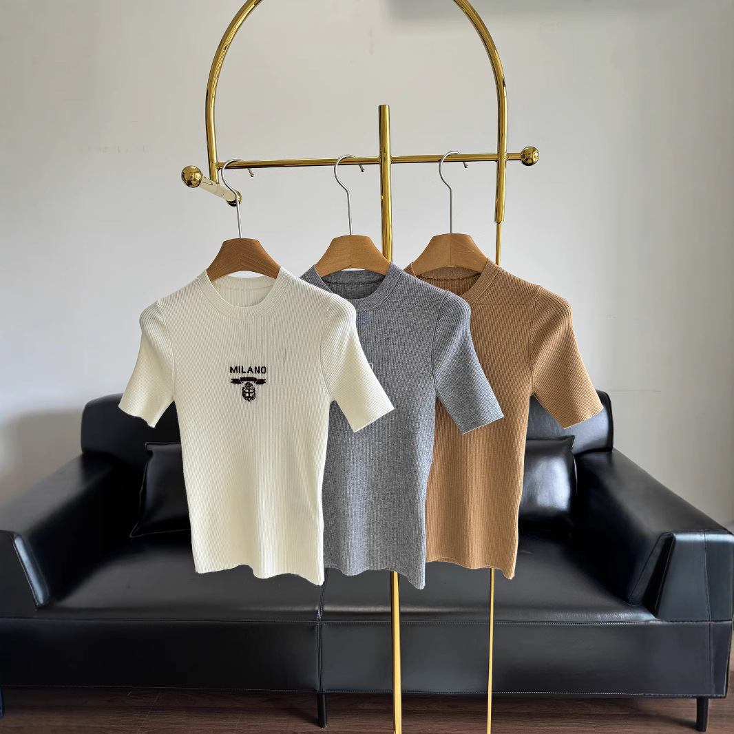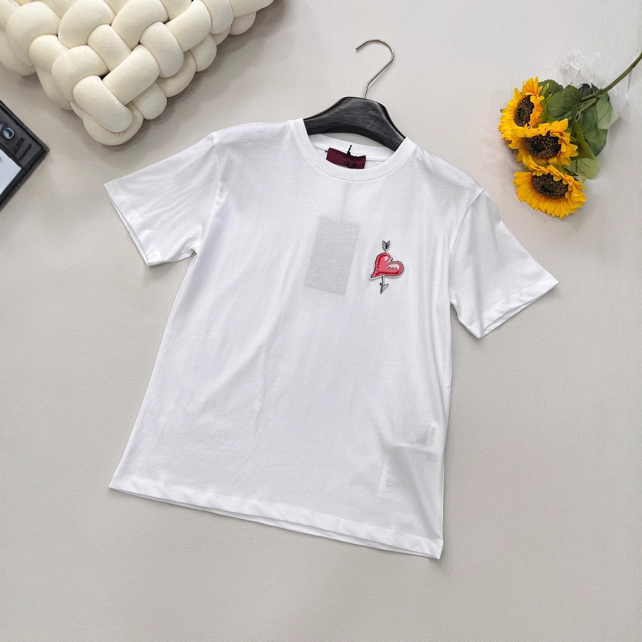 Spot G Home 2025 夏レターラブ刺繍カジュアル多用途痩身気質レトロスタイルラウンドネック Tシャツトップ女性用