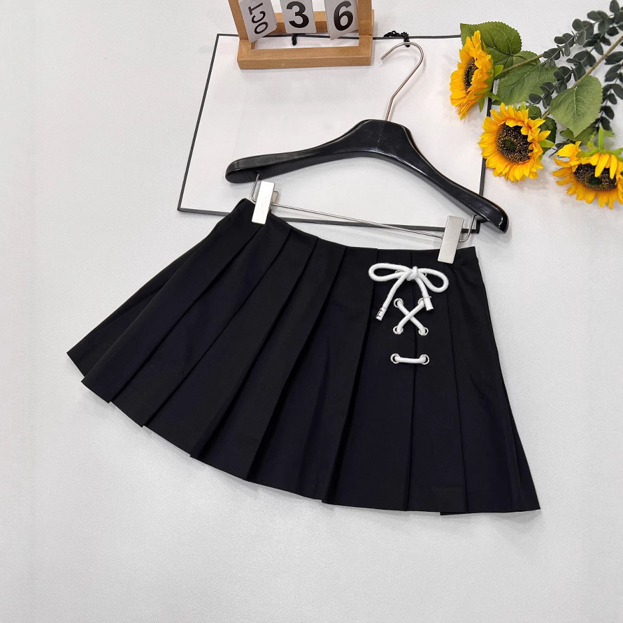 Spot P Home 2025 夏気質カレッジスタイルストラッププリーツスカートハイウエスト痩身年齢軽減 A ラインショートスカート女性用
