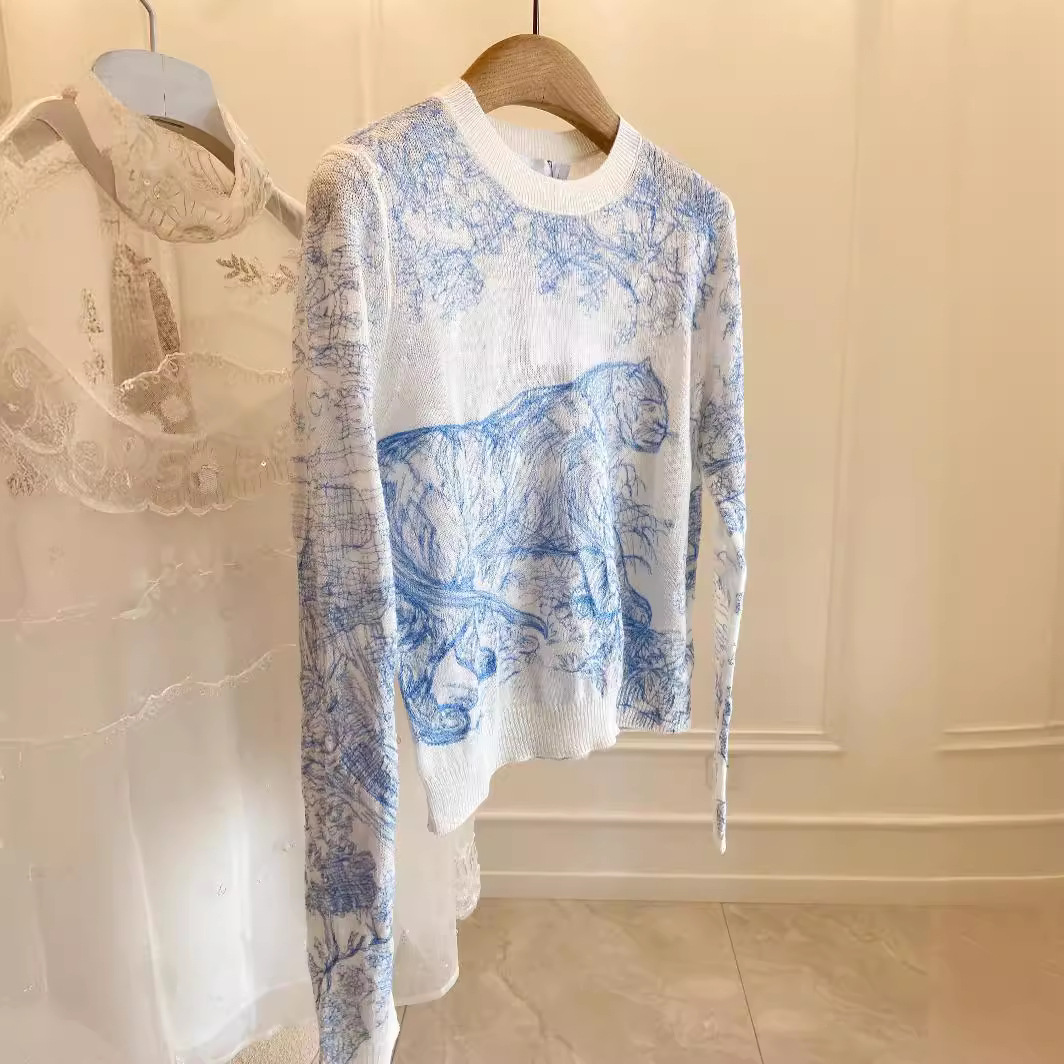 在庫あり Dブランド 2025年早春新作 刺繍入り高級極細カシミヤセーター レディース ラウンドネック ニットセーター