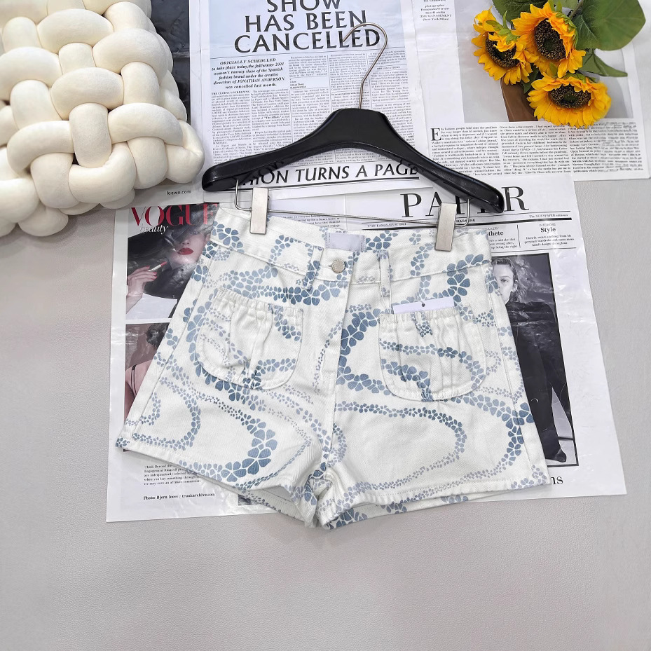 在庫あり CH Home 2025 新しい夏のプリント柄デニムショートパンツハイウエストスリムストレートパンツ多用途女性パンツ