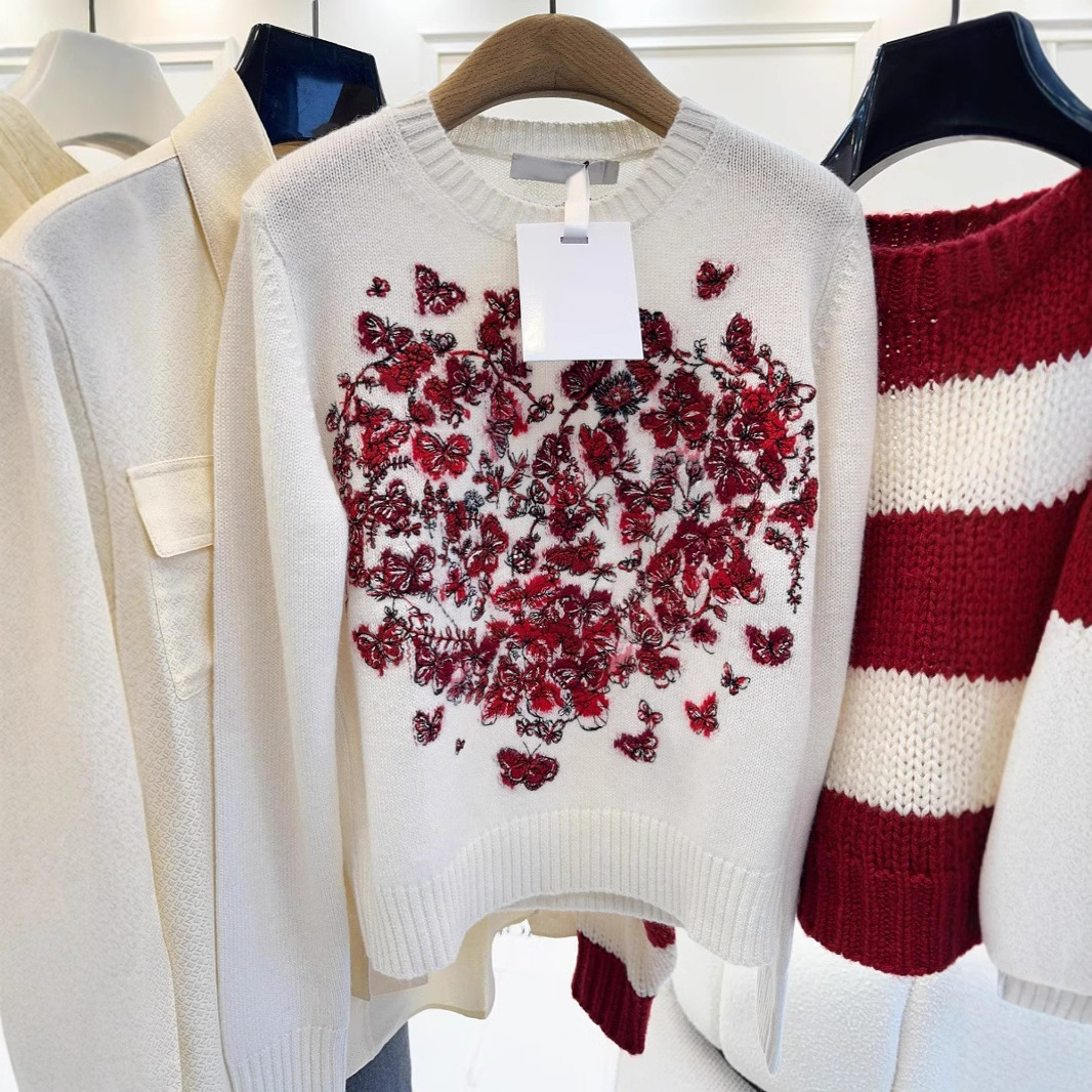 在庫ありD家20245春新作蝶とハート刺繍ニットセーター、小さな蜂と文字入りカシミヤセーター女性用