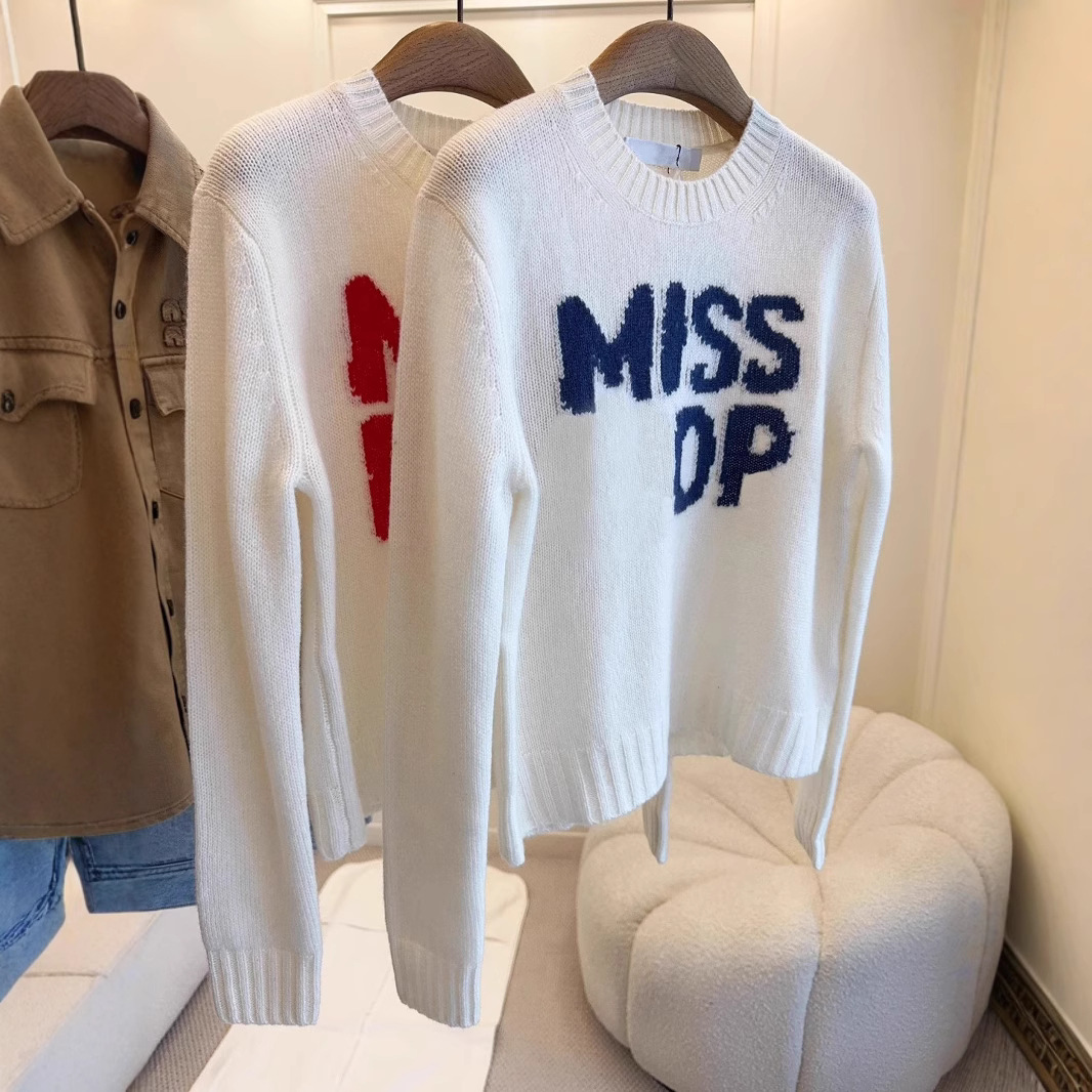 現物D家2024新型アルファベット落書き刺繍カシミヤニット丸首ファッションプルオーバーセーター