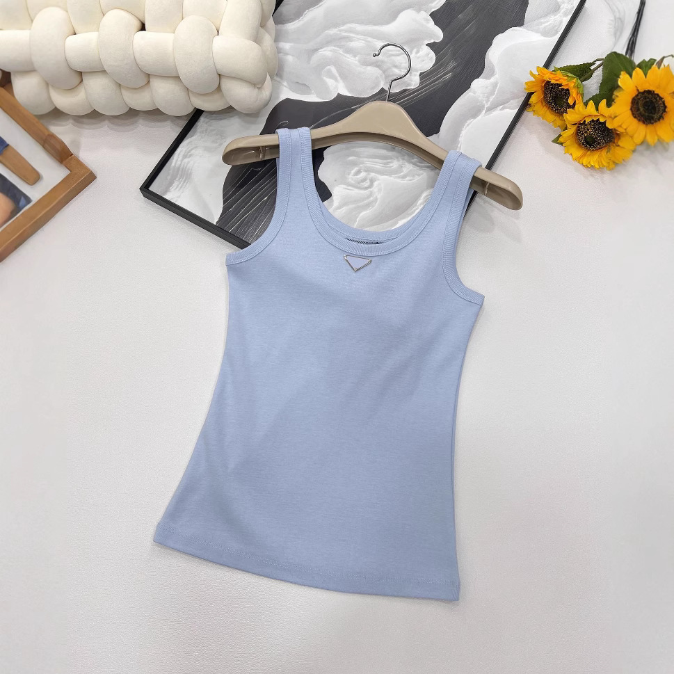 Spot P Home 2025 新しい夏スタイルのシンプルな三角ロゴラージラウンドネックノースリーブコットン多用途ベストトップ女性用