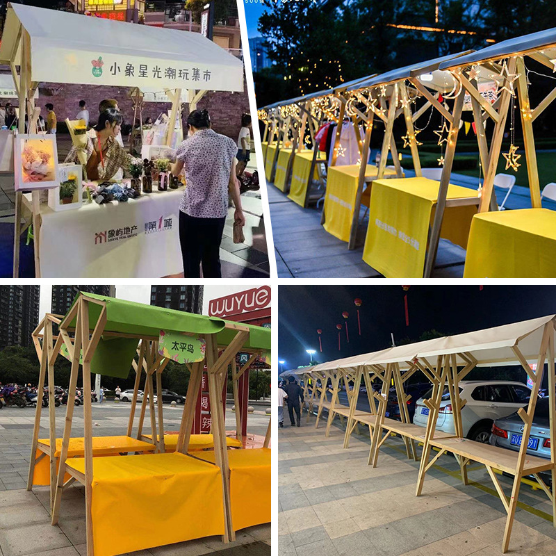 .折り畳み棚木枠屋外市場販売品移動車棚展活動露店棚は露店棚の生地の露店を示している