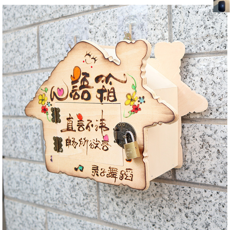 木製の創意苦情箱の意見提案箱の罰金秘密保持の願い箱の壁に鍵をかけて屋外でかわいい