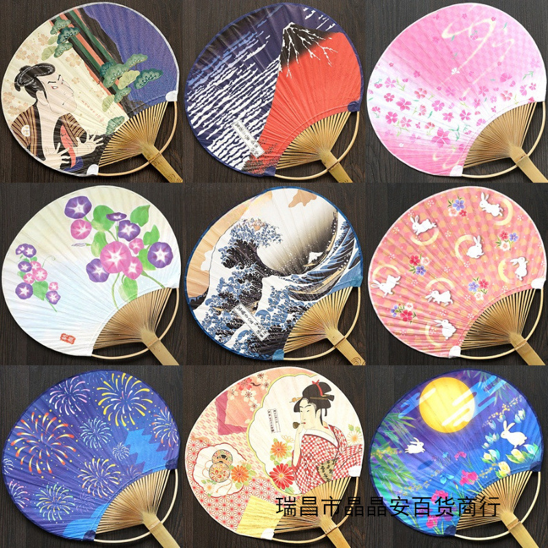 日本の扇子、和風扇子、日本の桜、富士山、波、浮世絵、日本の装飾写真小道具