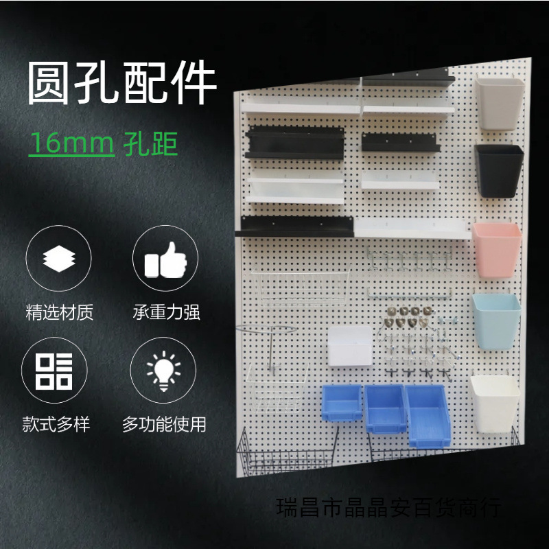穴の板の置物はかごの段の板を掛けてフックしてかごの箱のスーパーのアクセサリの金具の展示棚を収納します。