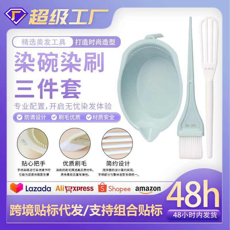 クロスボーダー美容室染毛ツール、染毛ブラシ、オイルブラシセット、染料クリームミキシングスティック、染毛コーム、染毛ボウル、3点セット