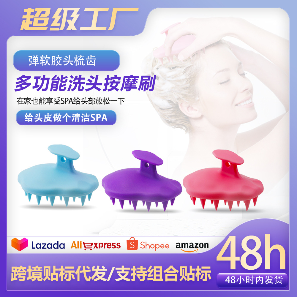 クロスボーダー新品両面シャンプーマッサージ器シリコンナイロン歯付きハンドルついでに頭皮をマッサージします。
