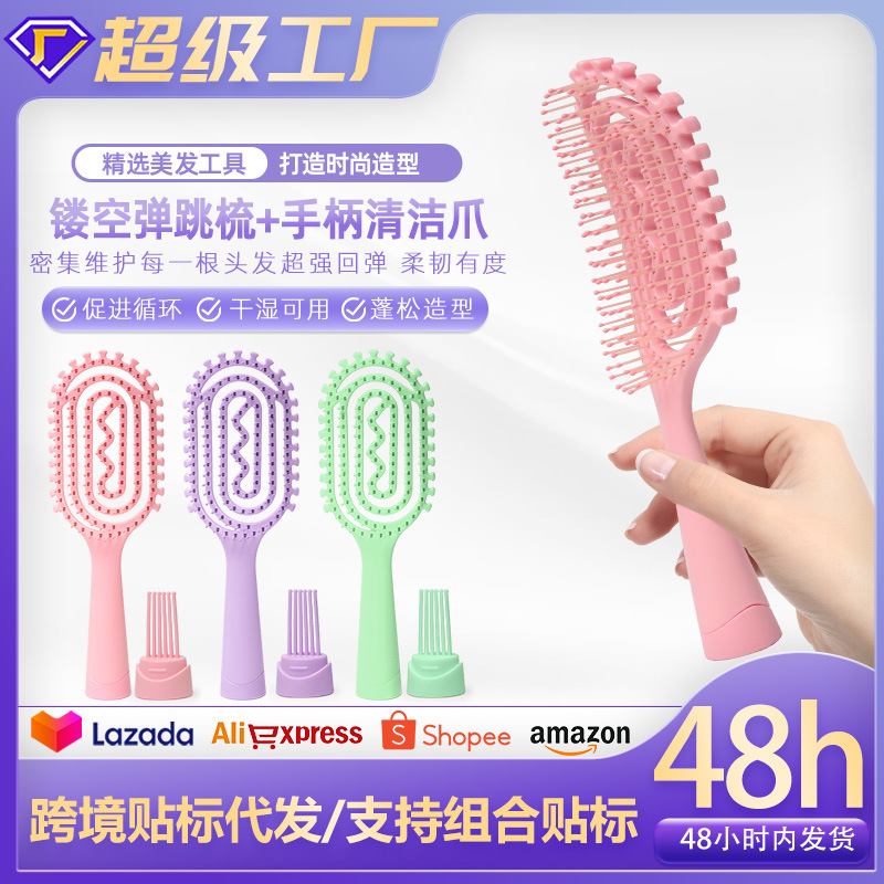 ハンドル付き中空バウンスコーム、クリーニング爪、ふわふわハイヘッドアーティファクト、女性用ロングヘアスタイリングリブエアクッションコーム