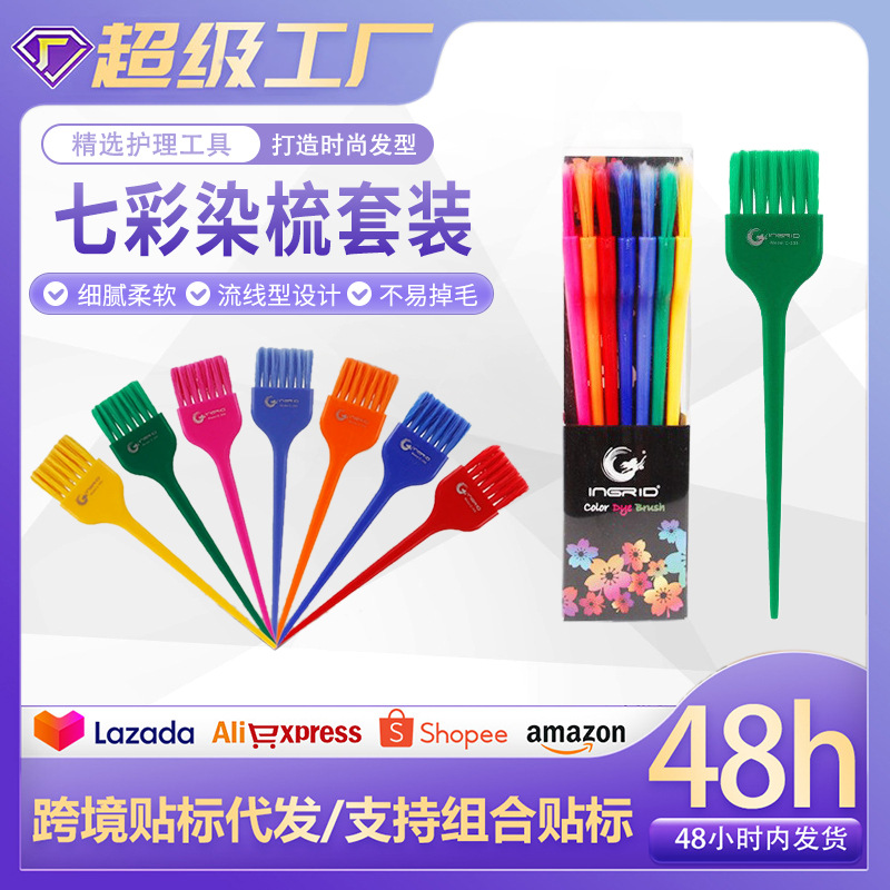 英格丽L号七彩染櫛セットグラタンブラシ染毛ブラシ美髪染毛ツール尖毛軟毛片面ブラシ