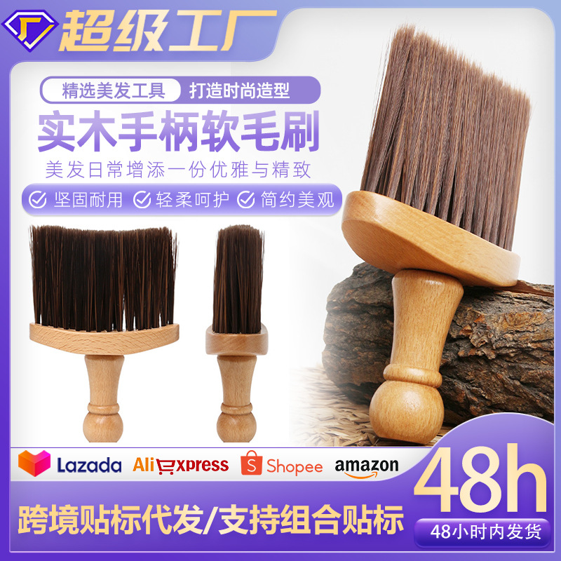 ヘアサロン理髪ソフトヘアスイーパーブナ材ナイロンヘアシェービングツールネッククリーニングブラシひげブラシ