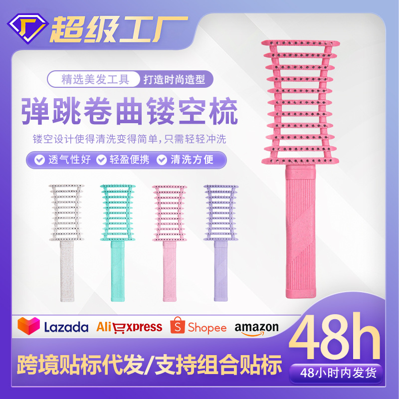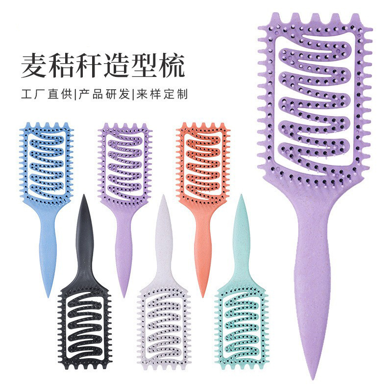 ヨーロッパとアメリカのスモールウエスト小麦とオレンジの茎の中空コーム、生分解性素材、滑らかなカーリングブラシ、バウンシングカーリングスタイリングコーム