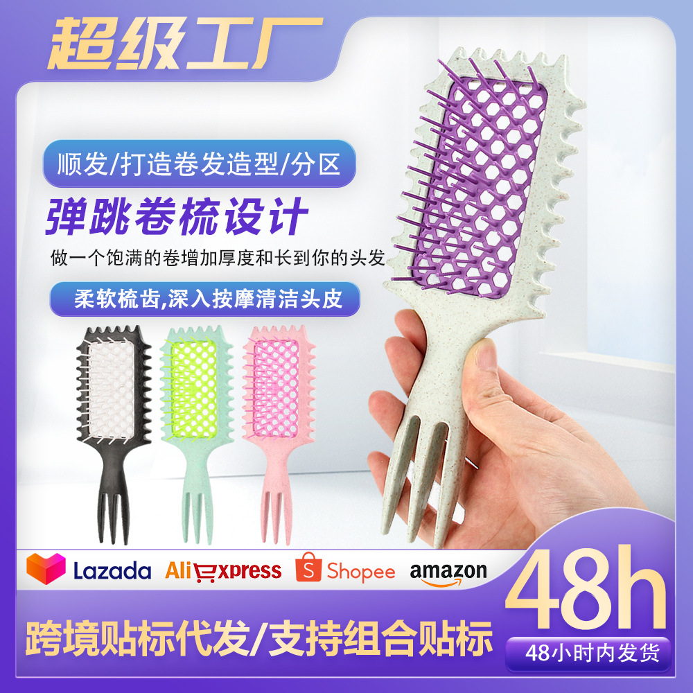 麦わら櫛が弾む櫛家庭用透かし巻き巻き櫛クロスボーダー櫛マッサージ櫛巻き髪櫛造形区分先先先櫛