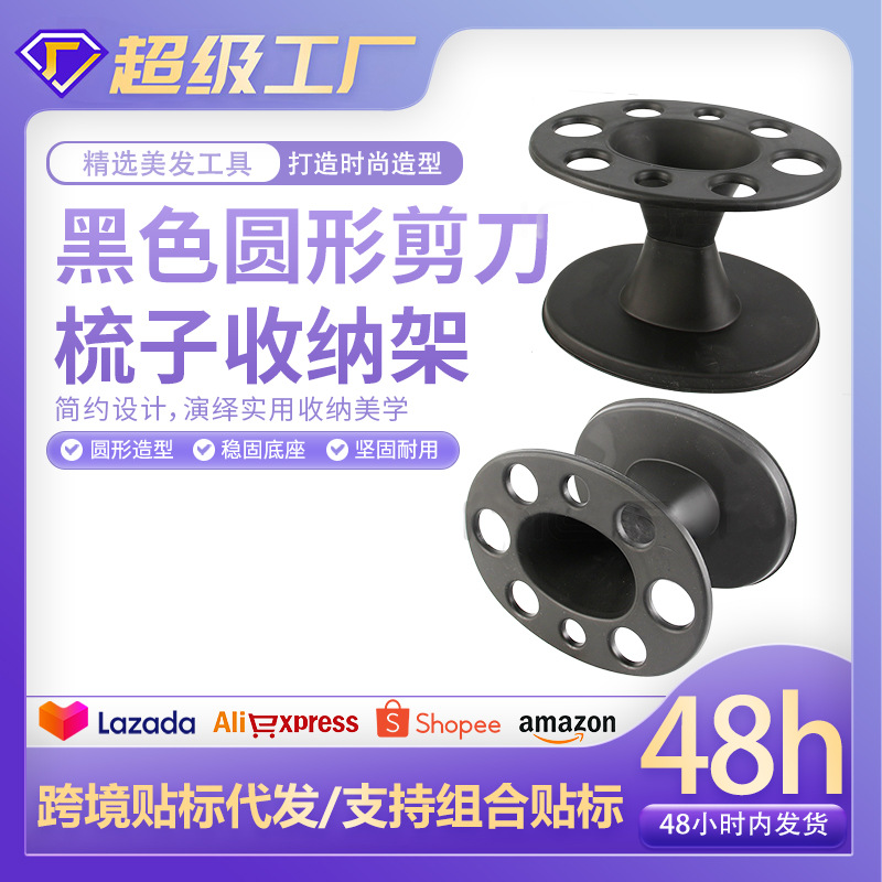 メーカー直販ヘアトリムハサミ櫛収納棚美髪道具巻き櫛ネックブラシコンセント黒色円形棚