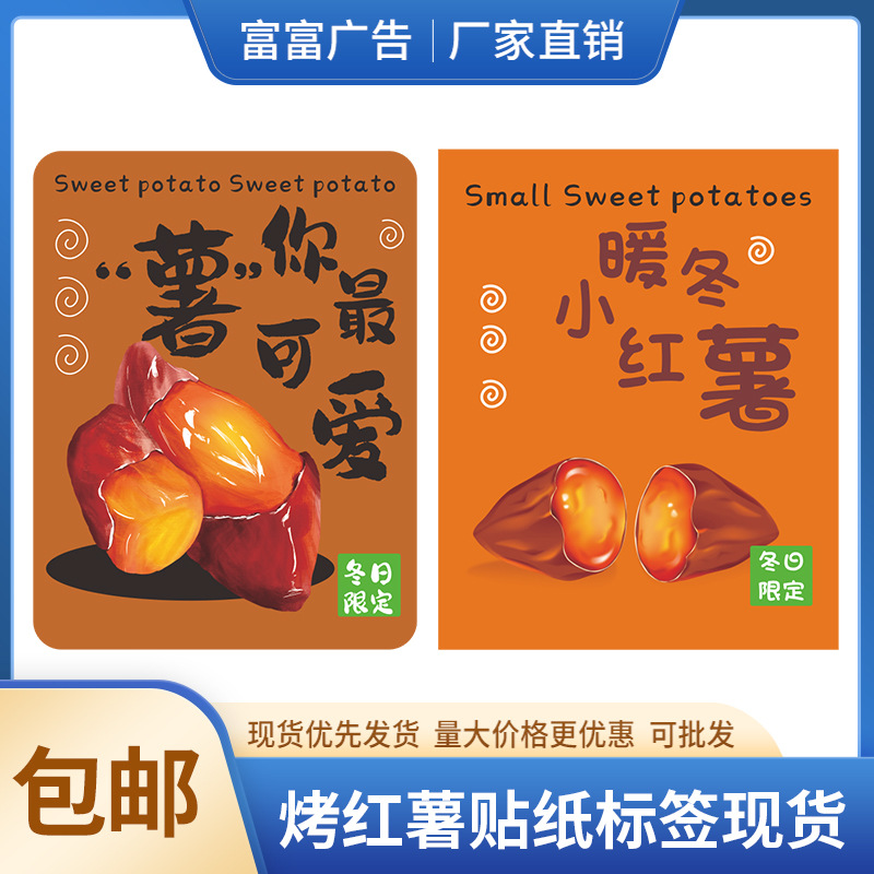 焼き芋のシールは暖かい冬のサツマイモのコート紙に印刷されています。