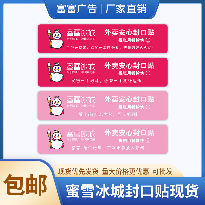 蜜雪氷城現物ステッカーシール印刷長条販売安心シールシール開封防止シール郵便