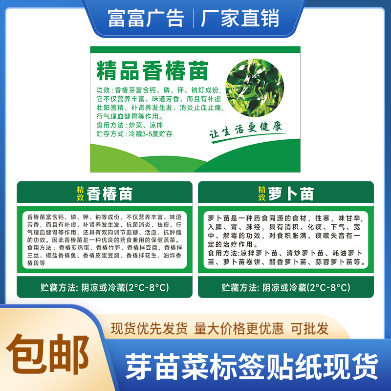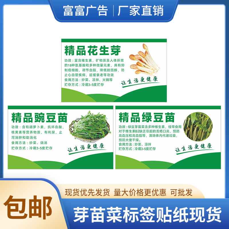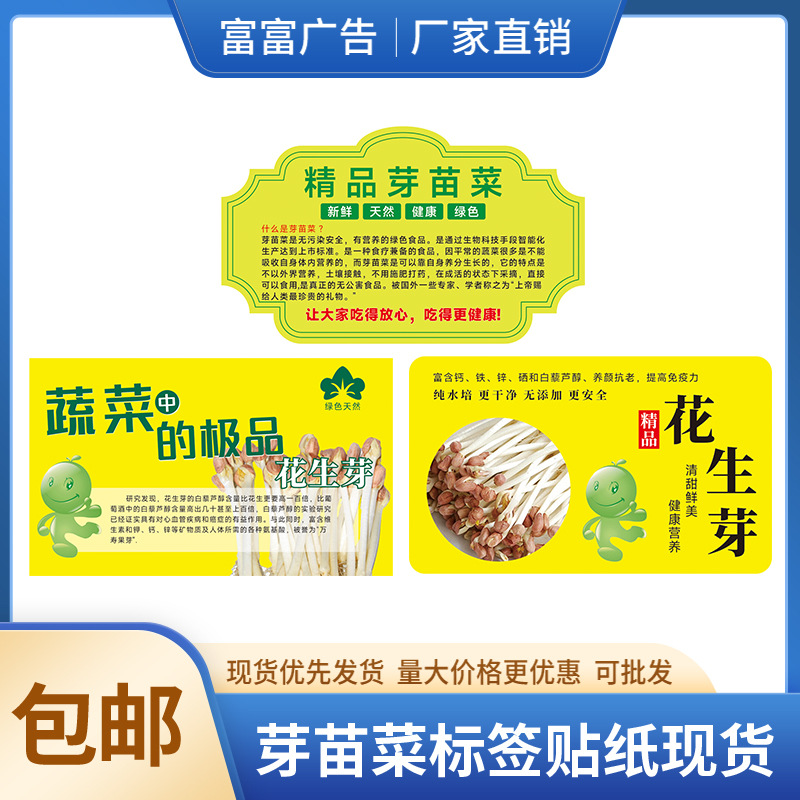 不乾性芽菜ラベルシール銅版紙野菜中の絶品ピーナッツ芽精品黒もやしエンドウ苗