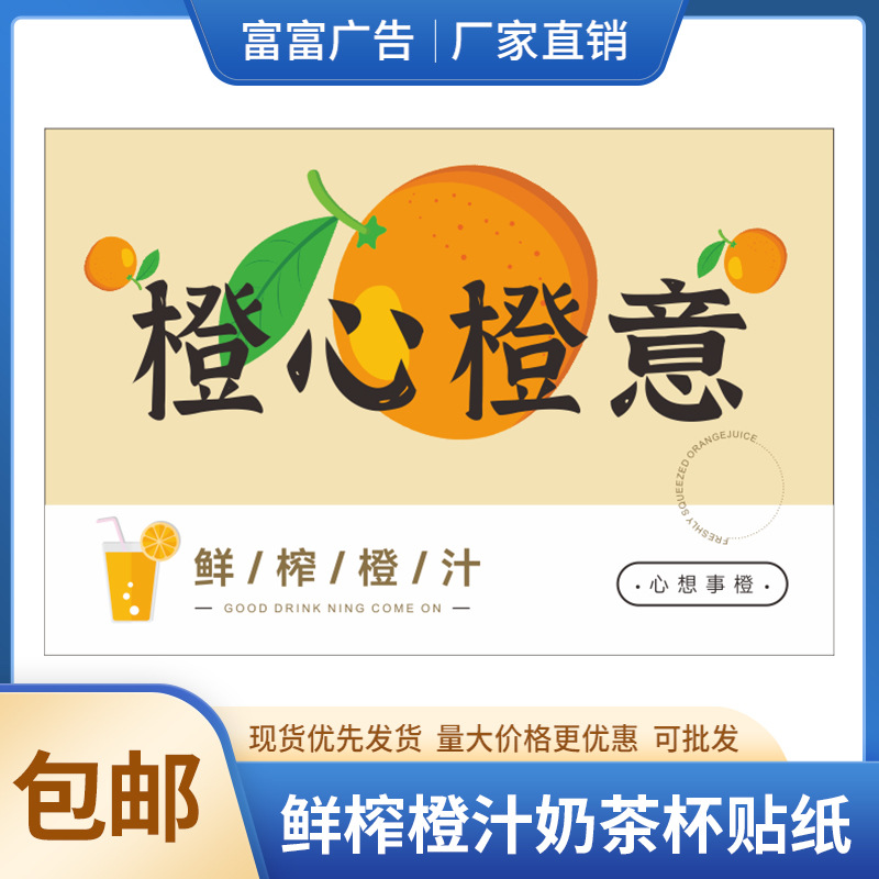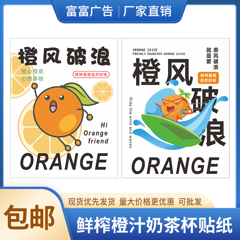ステッカーラベル生搾りオレンジジュースミルクカップ貼り万事大オレンジ風破浪スポットシールコート紙