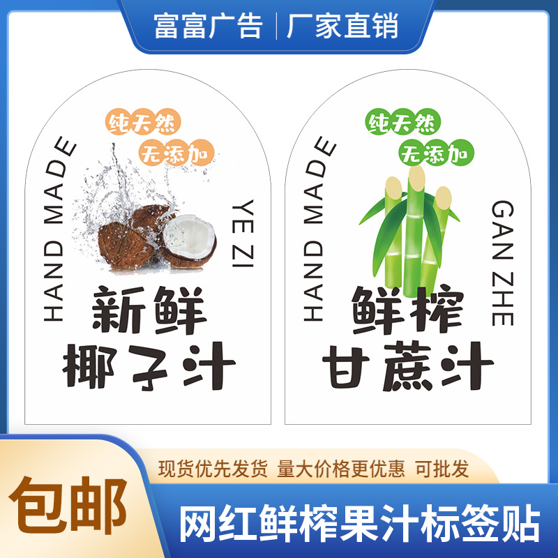 ネット赤生搾りジュースシール銅版紙不乾性フィルム生搾りココナツジュース純天然新鮮楊梅汁